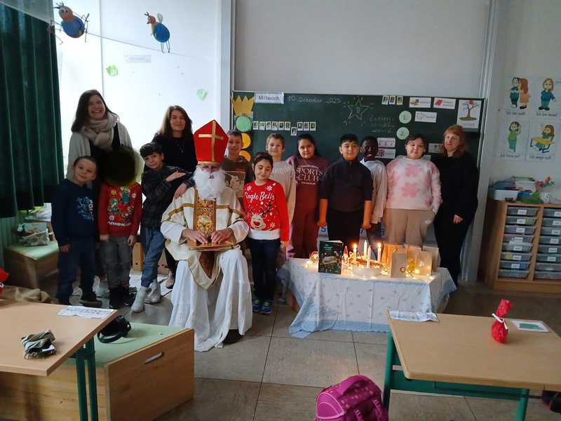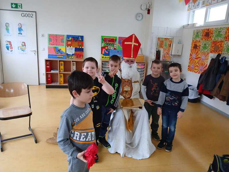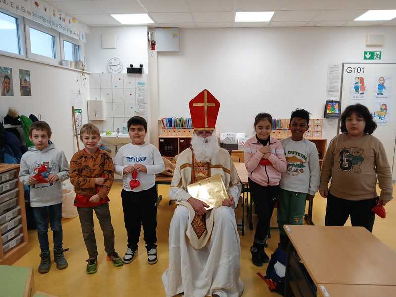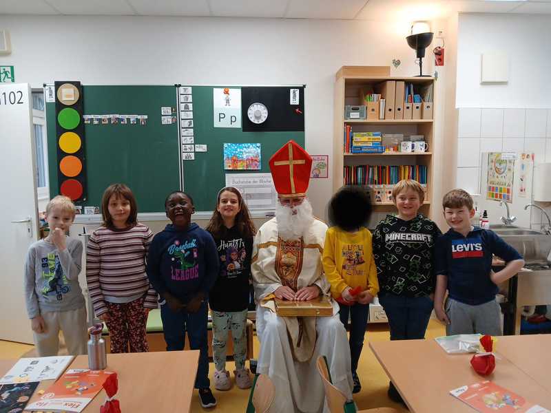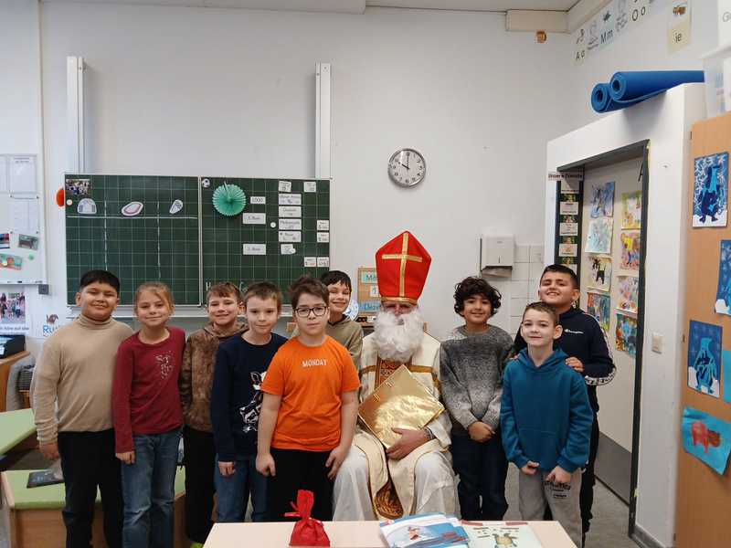 Mit seinem goldenen Buch zog der Nikolaus durch die Klassen. Für jedes Kind las er persönliche Worte aus seinem goldenen Buch vor. So manch einer staunte voller Respekt oder wollte wissen, ob sich dahinter wirklich der wahre Nikolaus versteckt...